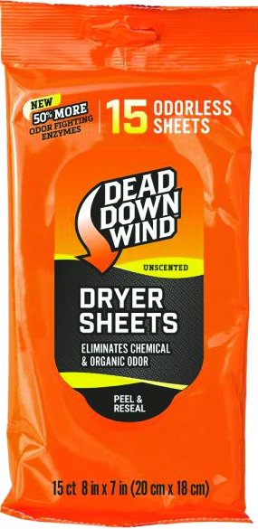Dead Down Wind 113019 Dryer Sheets Odor Eliminator Odorless Scent Dryer Sheet 30 Per Pkg