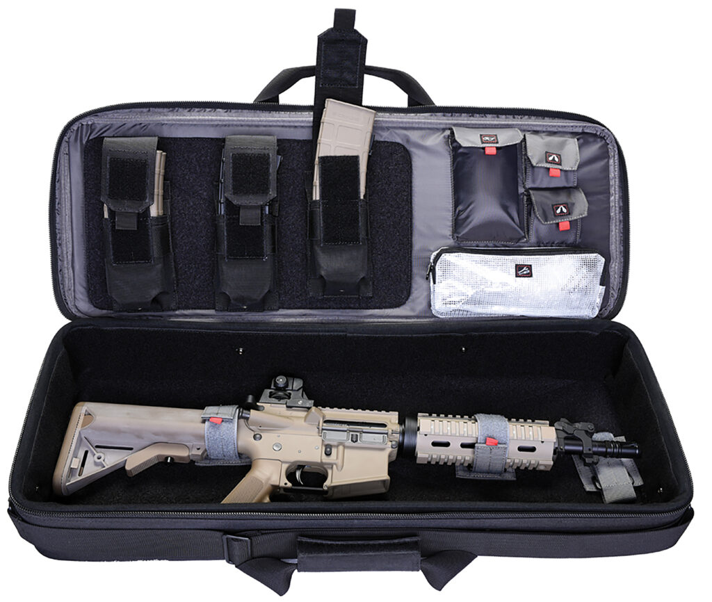 The GPS Bags T28SWC is a rugged hardsided tactical case built to safely transport SBR rifles with folding stocks and up to six magazines. Its 1000D nylon construction with DuPont Teflon finish and lockable YKK zippers provide serious protection for serious shooters.