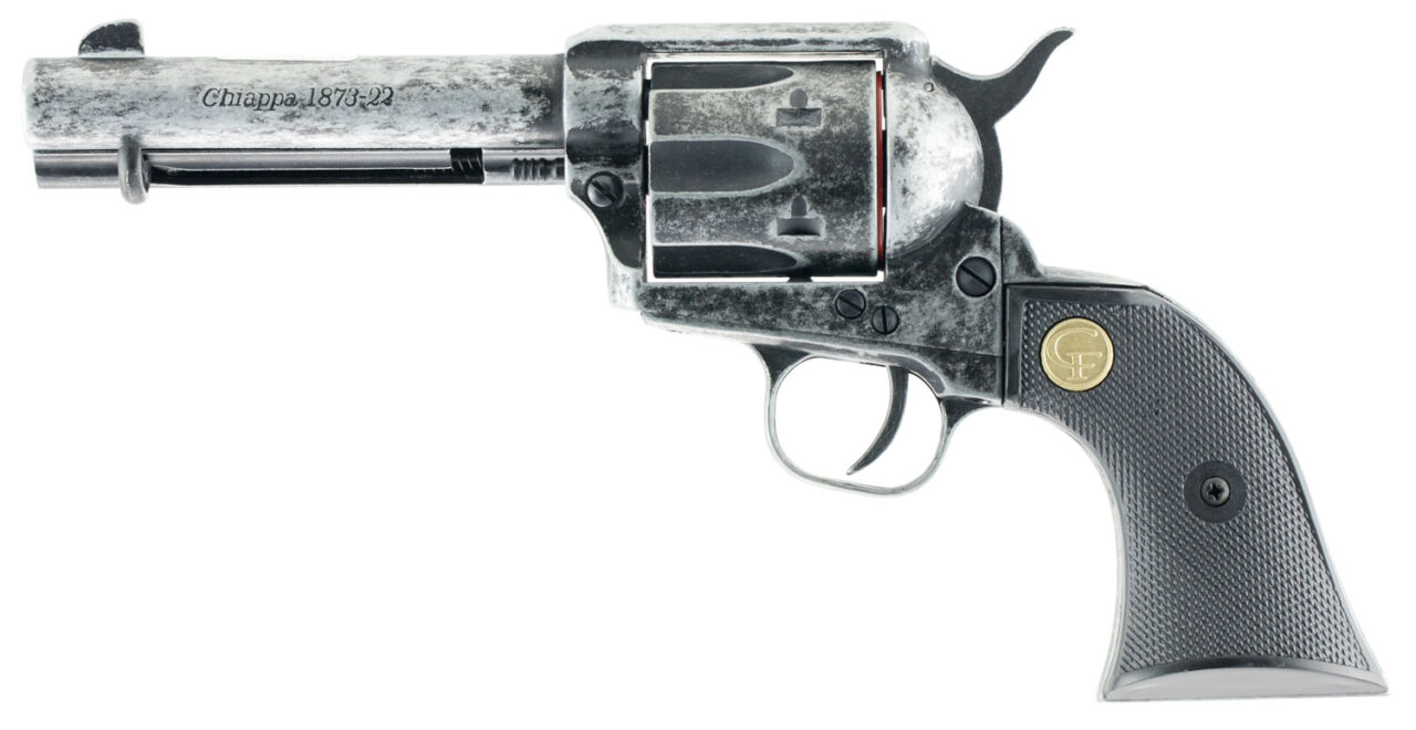 Chiappa Firearmss 340089 SAA 1873 Medium Frame 22 LR 6 Shot, 4.75″ Antiqued Steel Barrel, Antiqued Steel Frame, Antique Cylinder, Black Plastic Grip, Exposed Hammer