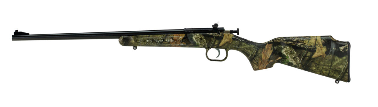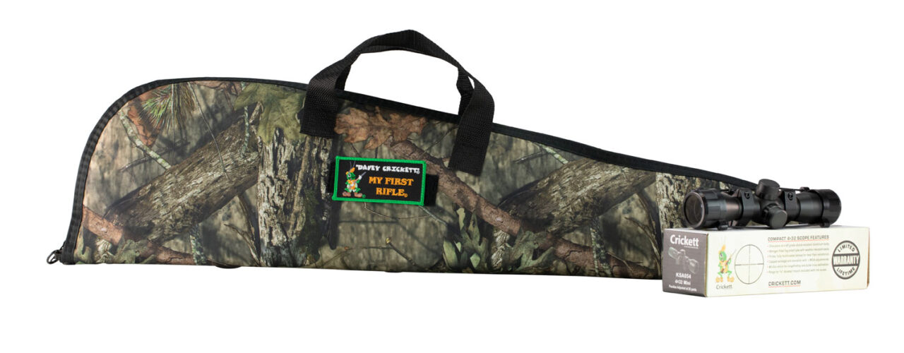 Crickett KSA2163BSC Youth Package 22 LR 1rd 16.12″ Blued Barrel/Receiver, Mossy Oak Break-Up Synthetic Stock, Rebounding Firing Pin Safety Includes 4x32mm Scope, Scope Mount & Soft Case