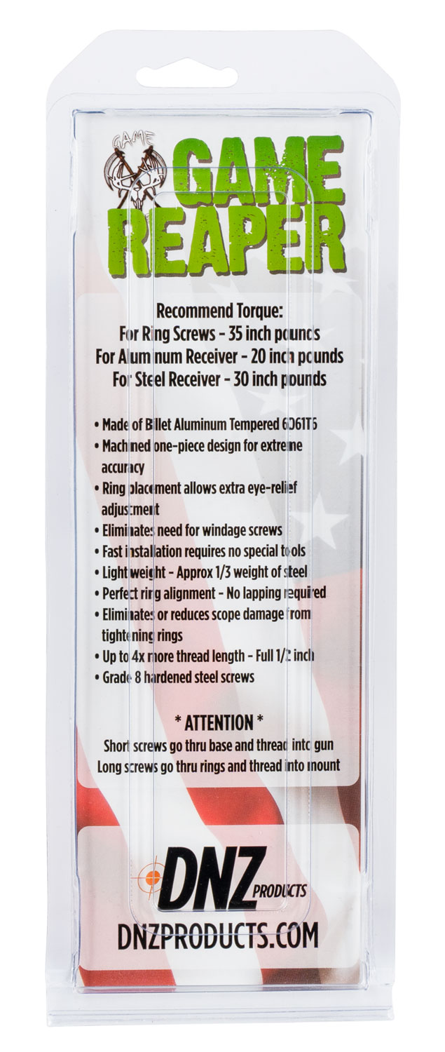 The DNZ Game Reaper-CVA is a one-piece scope mount and ring combo engineered specifically for CVA black powder rifles and modern CVA barrels. This matte black aluminum setup comes ready to mount with extra-high rings for 30mm scopes, eliminating the guesswork of piecing together compatible components.