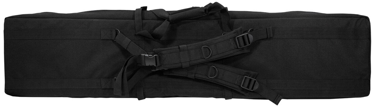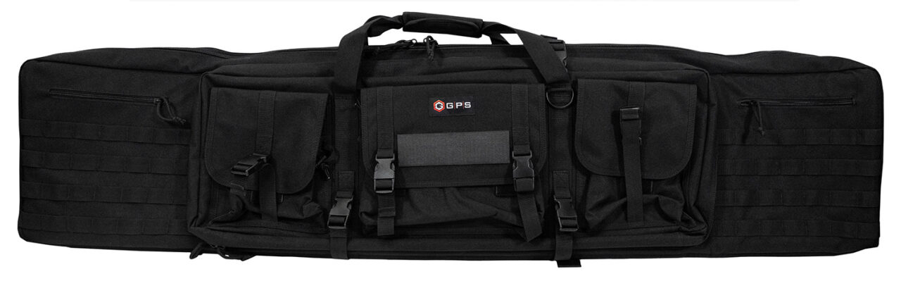 GPS Bags DRC55 Double Rifles Case Black 600D Polyester with 2 Padded Pistol Sleeves, MOLLE Webbing & Lockable Zippers 55″ L x 12.75″ H x 9″ W Exterior Dimensions