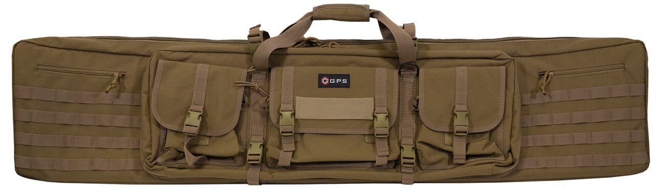 GPS Bags DRC55FDE Double Rifles Case Flat Dark Earth 600D Polyester with 2 Padded Pistol Sleeves, MOLLE Webbing & Lockable Zippers 55″ L x 12.75″ H x 9″ W Exterior Dimensions