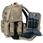 GPS Bags T1612BPT Tactical Range Backpack Tan 1000D Nylon Teflon Coating with 3 Pistol Storage Cases, Visual ID Storage System, Pull-Out Rain Cover & Chest Strap