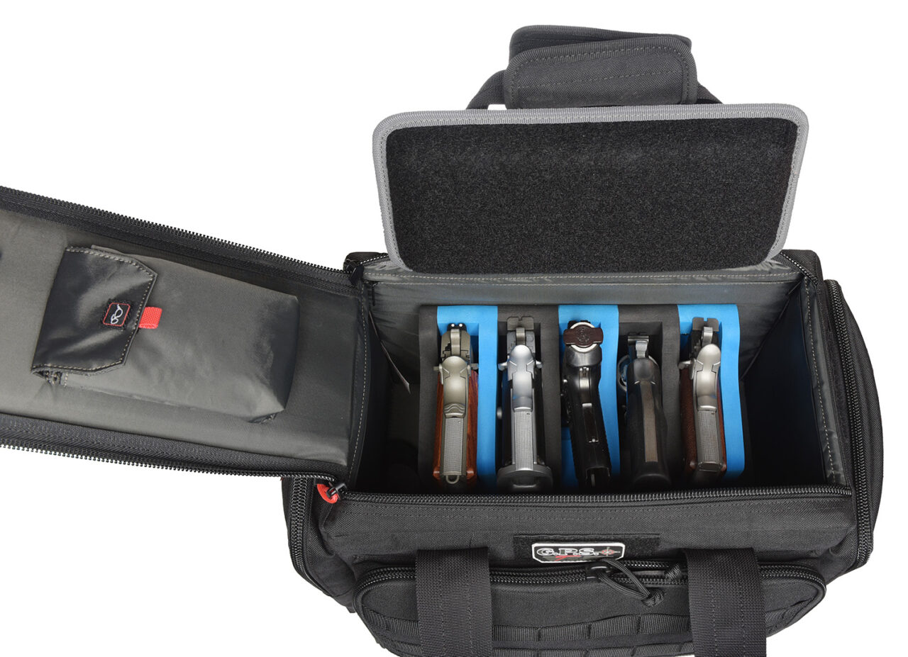 The GPS Bags Tactical range bag holds five pistols secure in custom foam cradles with dedicated ammo storage and dump cups for quick reloading. Built tough with 1000D Nylon and Teflon coating, it’s purpose-built for serious shooters who demand organization and protection.