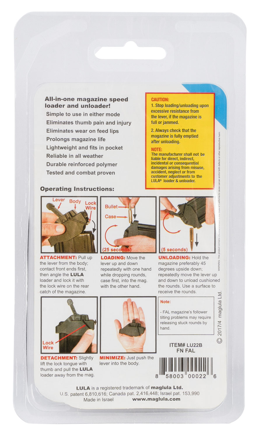 The Maglula LU22B LULA Loader speeds up magazine loading for your .308 Win and 7.62x51mm NATO FAL rifles while reducing hand fatigue and finger soreness. This polymer-built loader and unloader makes range sessions and hunting prep a whole lot easier on your hands.