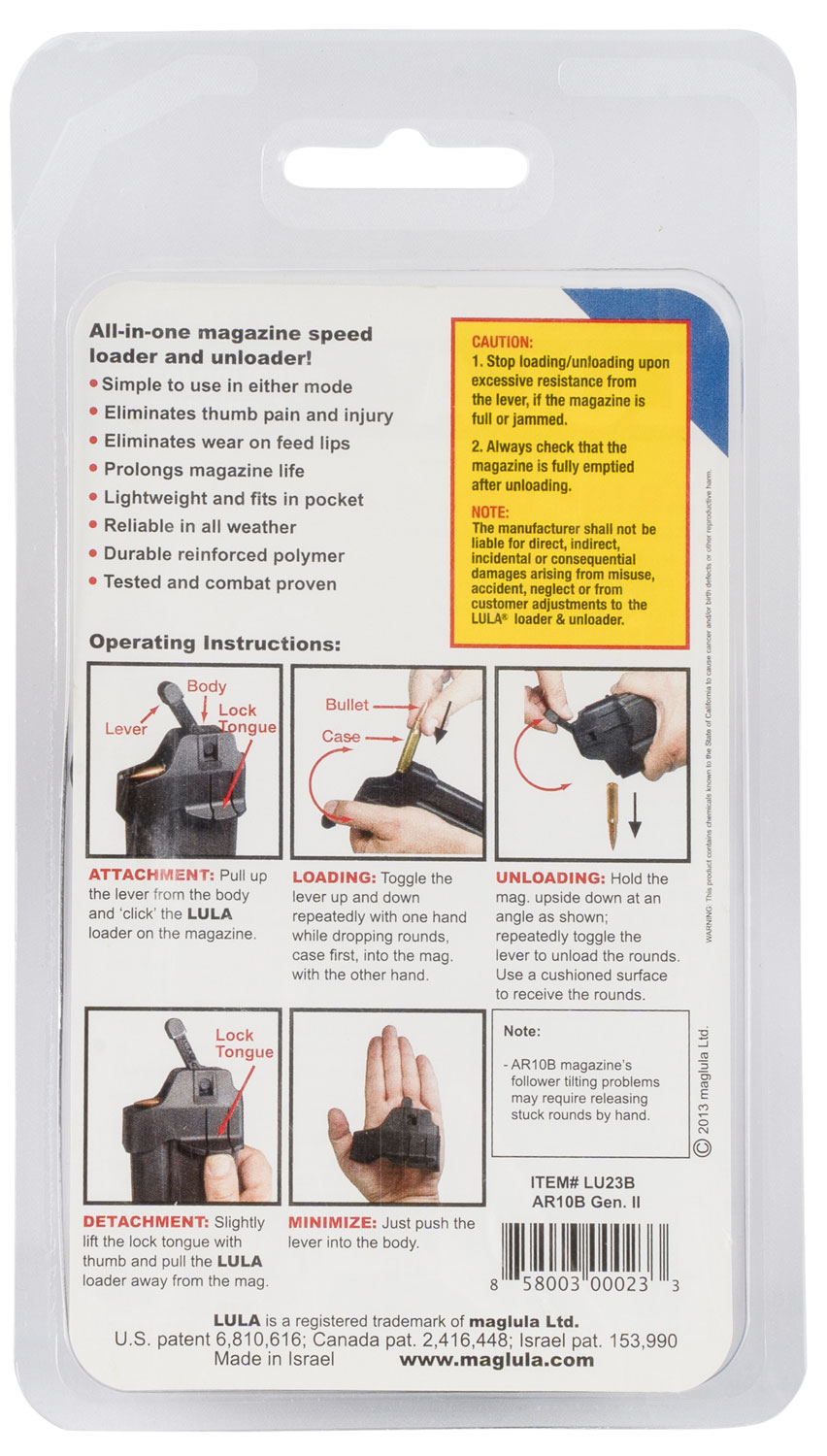 Speed up magazine loading and save your thumbs with the Maglula LU23B LULA Loader for .308 Win and 7.62x51mm NATO magazines. This polymer-constructed loader is purpose-built for AR-10B GenII platforms and makes filling high-capacity mags fast and painless.