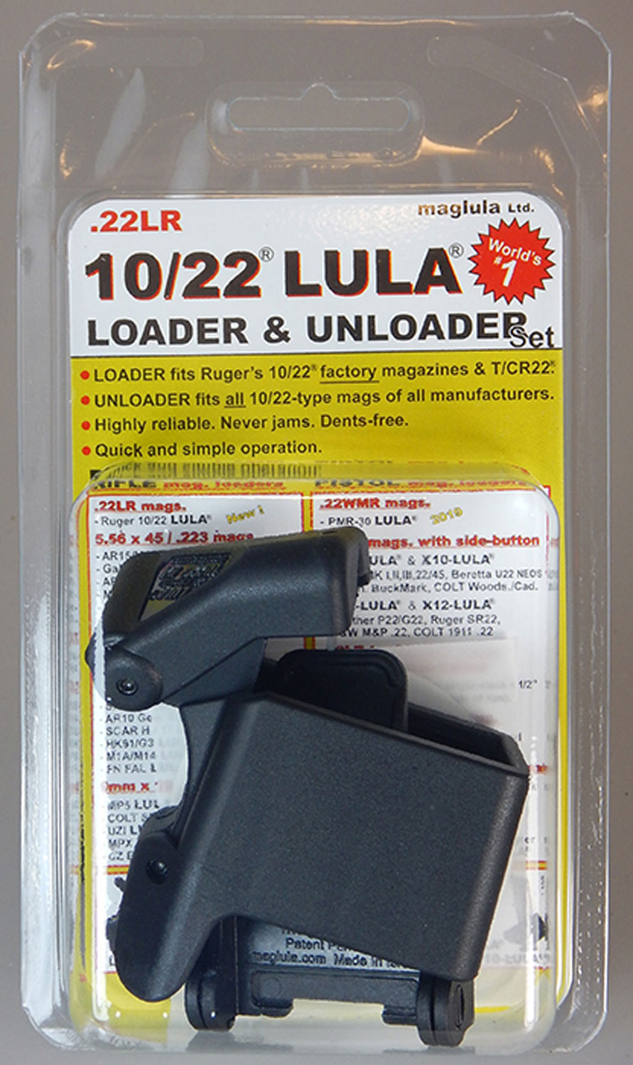 Speed up magazine loading and save your thumbs with the Maglula LU30B LULA loader designed specifically for Ruger 10/22 magazines. This polymer loader makes quick work of feeding .22 LR rounds into 10/22 mags, and it unloads just as easily when you need to clear them out.