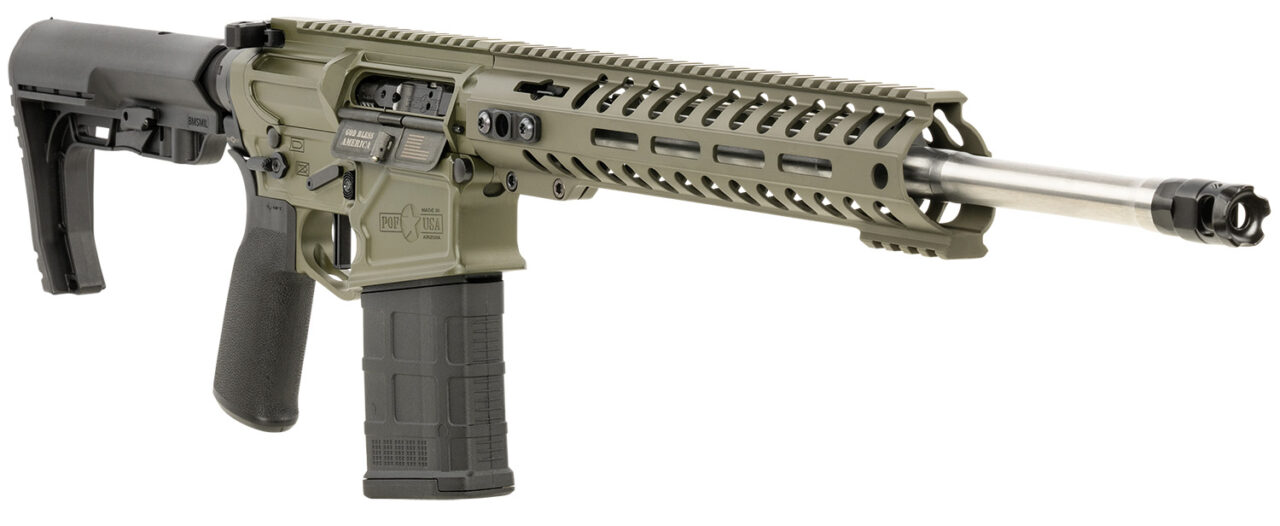 Patriot Ordnance Factory Rogue Direct Impingement 7.62x51mm NATO 20+1 16.50″ Stainless Barrel, OD Green Anodized Rec, Micro-B Muzzle Brake, 11″ M-LOK Handgaurd, Black MFT Minimalist Stock & Engage Grip
