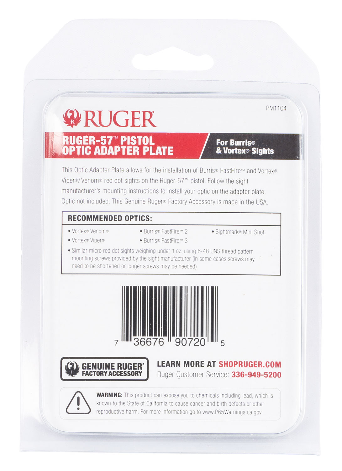 Ruger 90720 Optic Adapter Plate For Burris & Vortex Aluminum Black Hardcoat Anodized
